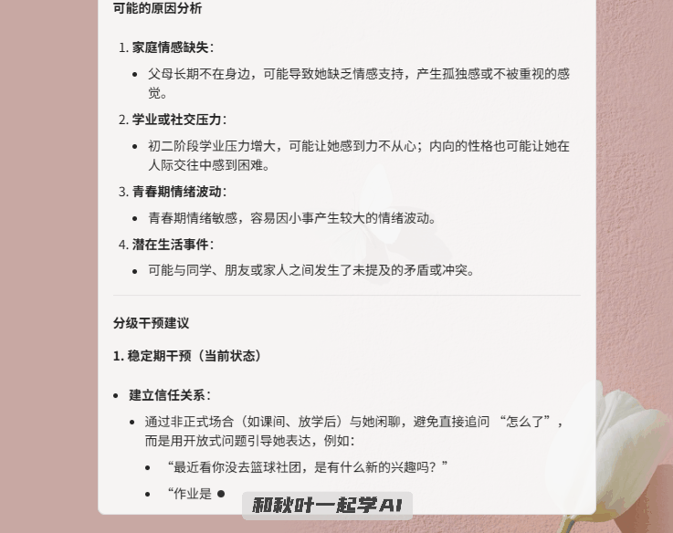 给出分级干涉方案,秋叶开学季献礼,点击生成后,30 秒就能生成风趣的思。超等省事儿!讲堂互动性不高?秋叶周寅教员研发了一款学生情感评估取指导的 AI 东西,